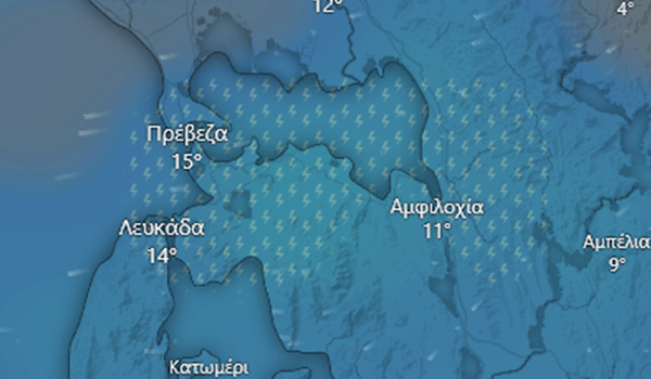 Κατά το απόγευμα, τα φαινόμενα λαμβάνουν πιο έντονο ηλεκτρικό χαρακτήρα, κυρίως στην περιοχή της Βόνιτσας και των παράκτιων ζωνών του νομού. Προβλέπονται καταιγίδες, με παρουσία κεραυνών, βροντών και κατά τόπους πολύ ισχυρών ραγδαιοτήτων βροχής.