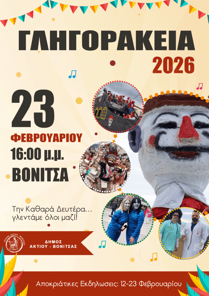 Ο Δήμος Ακτίου-Βόνιτσας παρουσιάζει το πρόγραμμα των αποκριάτικων και καρναβαλικών εκδηλώσεων για το 2026, καλώντας κατοίκους και επισκέπτες να ζήσουν από κοντά ένα πλέγμα δράσεων που απλώνεται σε πολλές κοινότητες και συνδυάζει το παραδοσιακό στοιχείο με τη συμμετοχή των παιδιών και των οικογενειών. Οι εκδηλώσεις αξιοποιούν έθιμα που έχουν καθιερωθεί διαχρονικά στην περιοχή, ενώ παράλληλα δίνουν χώρο σε σύγχρονες μορφές διασκέδασης, πάντοτε σε δημόσιους, ανοιχτούς χώρους, με στόχο να ενισχυθεί η κοινωνική συνοχή και να αναδειχθεί η τοπική πολιτιστική κληρονομιά. Το αποκριάτικο πρόγραμμα συνεχίζει μια πορεία εξωστρέφειας που έχει φανεί και τα προηγούμενα χρόνια, όταν ο δήμος οργάνωσε τριήμερα εκδηλώσεων με παιδικά καρναβάλια, γιορτές σε πλατείες και αναβίωση εθίμων στα κεντρικά χωριά.