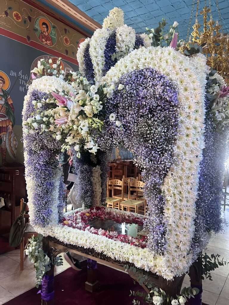 Από τον παραδοσιακό στολισμό με τα λουλούδια των αγρών, μέχρι τις πιο περίτεχνες συνθέσεις με χάντρες και σπάνια φυτά, κάθε ναός του δήμου μας έχει τη δική του μοναδική «σφραγίδα»